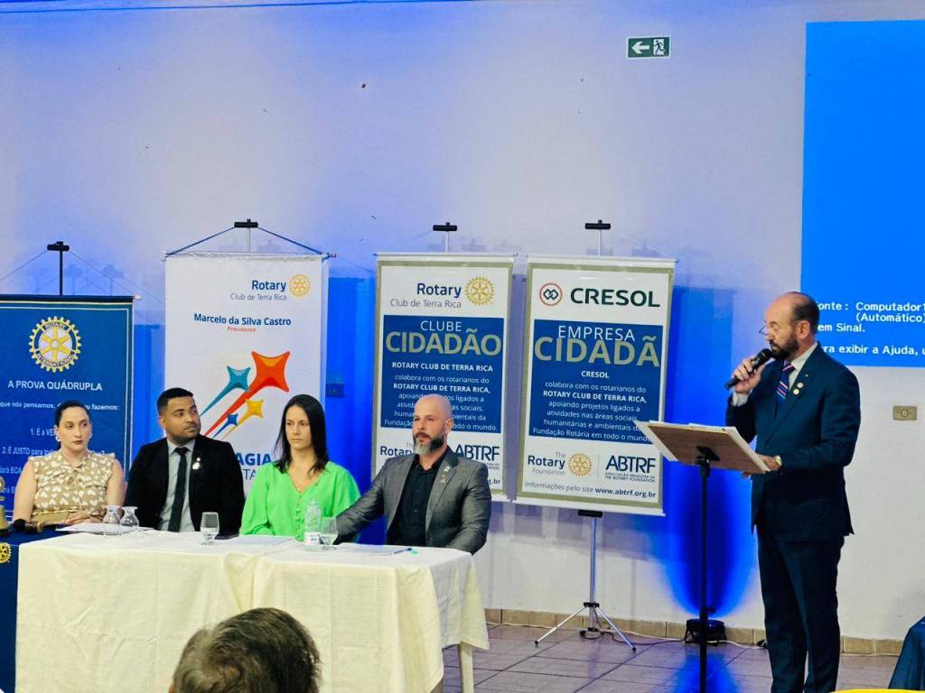 Um destaque especial foi a adesão da empresa CRESOL como nova empresa cidadã, simbolizando a parceria com o Rotary Club de Terra Rica e o fortalecimento do compromisso com a comunidade.