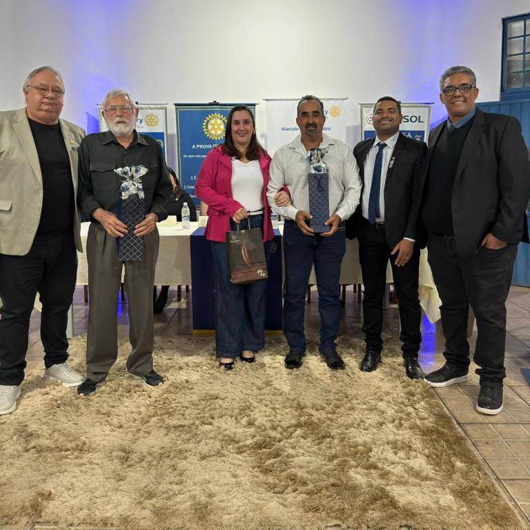Na sequência, o clube prestou uma homenagem especial ao senhor Nelson Gonçalves Pereira (Bel), à senhora Ana Paula Senson Pereira e ao senhor Luís Sentinelo, em reconhecimento pelos relevantes serviços prestados à comunidade ao longo dos anos, em parceria com o Rotary. Foram destacados por sua dedicação, generosidade e constante envolvimento nas ações promovidas pelo clube.