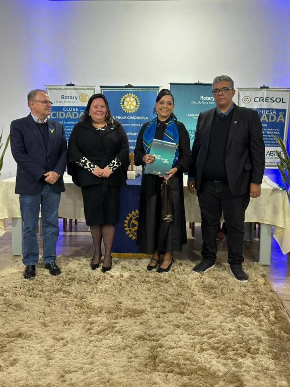 Representando o Distrito 4630, a Governadora Assistente Caroline Vendramin transmitiu a mensagem oficial do governador distrital Celso Yoshiaki Miyamoto e de sua esposa, Luciana Murara Miyamoto. Em sua fala, Caroline destacou a força do clube de Terra Rica, parabenizou a gestão que se encerrava e desejou sucesso à nova presidência, reforçando o papel do Rotary na transformação de comunidades.